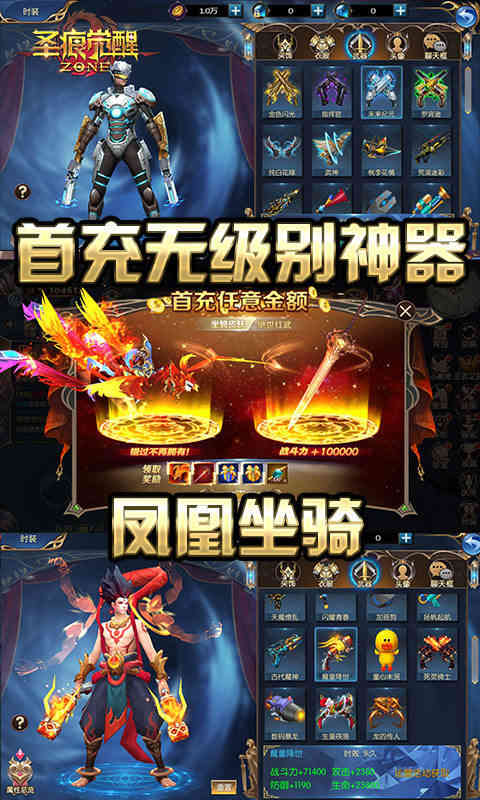 1、上线送VIP12,万元碎片*100(可兑换500元礼包);充值1:500,首充双倍;
