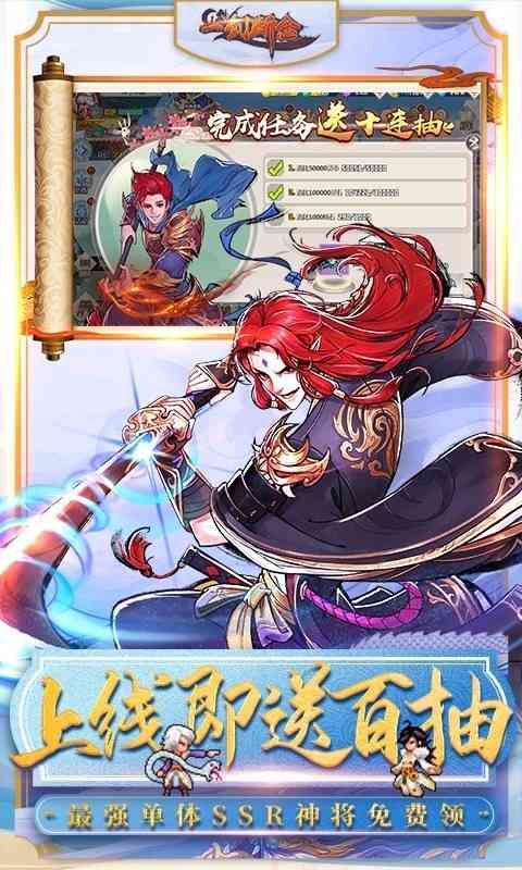 1、上线送V7,神石*88888,灵币*100W,6级随机红包10元起!VIP免费送,十连抽享不停!登陆即送红包,全民狂欢!