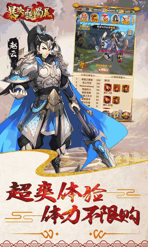 《暴揍魏蜀吴飞升版》是一款乱世争霸的三国系卡牌策略对战类手机网游,游戏设计的非常好,自由度很高。bug比较多,部分功能场景没有完善。但是非常好。游戏的前辈很友善。是个很好的三国游戏,欢迎下载试玩!