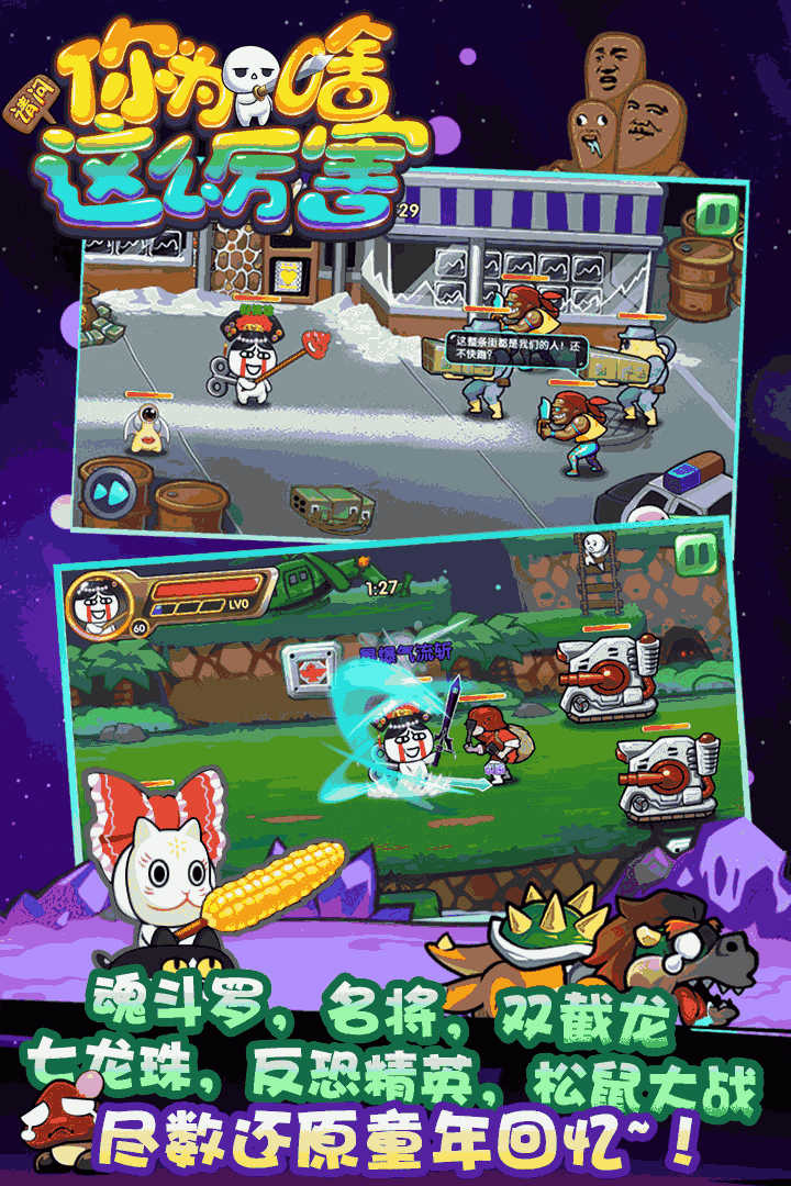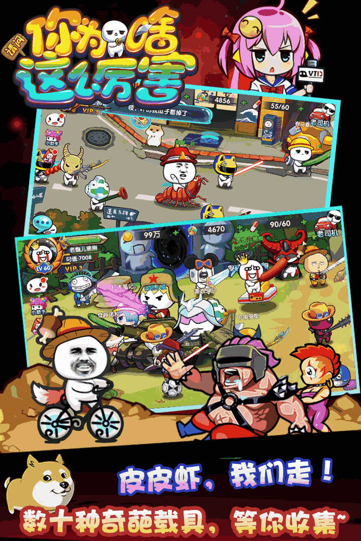 《请问你为啥这么厉害》是一款逗趣无限的恶搞系休闲RPG类手机游戏,游戏中有着大量极富有恶搞元素的内容设计,各种当下十分人气的表情包素材,且完美的融入到了游戏的玩法之中,真正带给玩家们一场穿越大冒险般的极致游戏乐趣,欢迎玩家们下载体验一番!