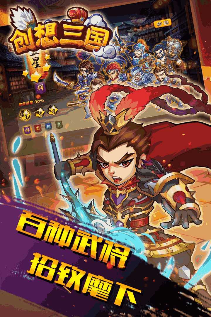 《创想三国》是一款可玩性极高的三国系卡牌策略对战类手机网游,游戏中有着大量形象与天赋技能各异的武将英雄任你收集,独具创新的体力消耗的战斗模式,以及相生相克的技能体系,支持实时多人在线PVP竞技玩法,只为带给玩家们一场激爽刺激的战斗快感,欢迎玩家们下载体验!