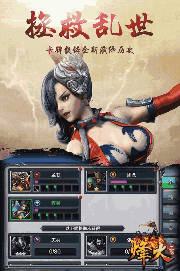 《烽火三国》是一款乱世烽烟起的三国系卡牌策略类手机网游,游戏中有着近万人的三国典故中名兵将领,各种酣畅淋漓的PVP多人竞技场面,以及最公平合理的对战机制,搭配超多极富有策略性的挑战关卡设定,只为带给玩家们一个充满战火硝烟的三国世界,欢迎玩家们下载体验!