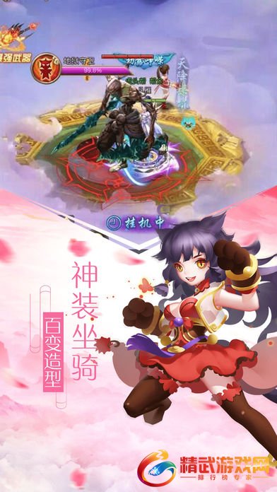 极品仙宠,上古坐骑,如影随形,幻化双飞!同时还能爲你的属性加成,战力不断升级。另有千万种精美时装随意搭配,炫彩羽翼,光环加持,彰显你的专属魅力!