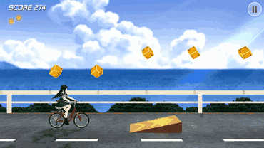 ▷单车少女系列跑酷,这次场景是吹着温暖海风的岸边公路。