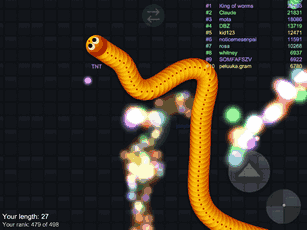小心-如果你的头碰到另一条蛇,你会爆炸,然后游戏结束。但是如果你让其他的蛇撞到你,它们就会爆炸,你可以吃掉它们的残骸!