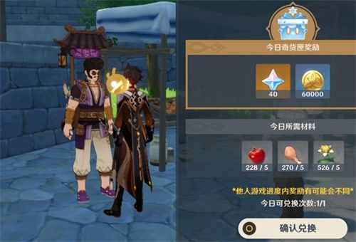 2. 共有7种元素奇货匣,每个人的世界里的奇货匣种类不同,奖励也就不同,但兑换材料可能是一样的