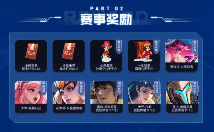 客户端内奖励:66.6和6.66红包,送合作皮肤,Q版英雄手办等等~匹配攒积分兑换就行;