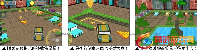 这是一款以知名游戏当个创世神为基底风格的作品,画面虽然只是以简单的方块堆叠构成,但却相当緻趣可爱,讨人喜欢。开着你的私家车,以灵活的技巧挑战各种不同类型的场地,收集关卡内所有的星星,完美的把车停好吧。
