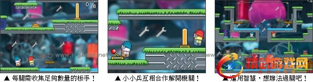 小小兵修理工是一款改编自同名动画片的游戏。游戏中,小小兵基地的设备出现了故障,极其危险,为了排除故障,便派出两个最优秀的小小兵去修理。玩家要同时控制两个小小兵,想办法让他们能收集到足够数量的板手,再让他们能顺利走回终点才可以前进下一个关卡,另外,过程中要小心跌落陷阱里,否则会使游戏重来的喔。现在就和小小兵一起修理基地吧!