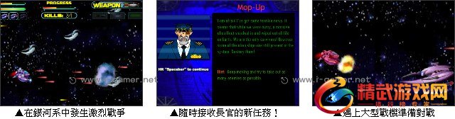 这是一款在宇宙中战斗的游戏,一开始要先接受长官的任务,再出战,敌军一波接一波的攻来,你的攻击也不能间断,需要不断的开枪扫射消灭敌人的战机, 越后面会接到越困难的挑战,你能保卫好自己的领土不被侵犯吗?快来试试看吧!