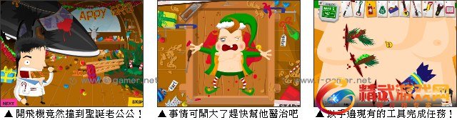 业余外科手术在寒冬中推出了耶诞版喔,这是主角在开飞机时不慎将正分送礼物的圣诞老公公撞倒,这下事情可闹大了赶快帮他医治吧!游戏中玩家必须利用手边现有的工具,切比萨的刀和一些奇怪的工具 ... 订书机,打火机,止痛药等等 .. 看看你是否能完成任务。