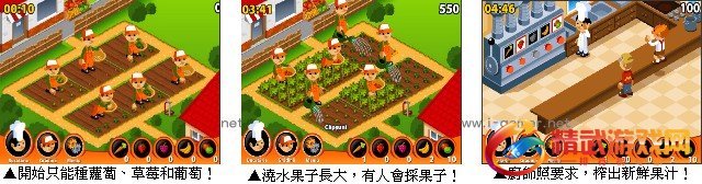 欢乐田园是一款经营养成游戏,刚开始的时候只能种胡萝蔔、草莓和葡萄,点选地就可以选择要种的种类,种好时再点地就可以选择要种的种类,之后也可以选择浇水,点铲子是铲掉,等植物慢慢长大浇水果子长大,有人会去採果子,现在可以点画面左上方的magazin在那裏买苹果和香蕉,然后点画面左下角厨师就会切换到店面,会有客人来买果汁,照着客人的要求,按下水果下面的按钮然后点旁边的大扳手就可以榨出美味又营养的新鲜果汁啦!