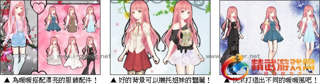 暖暖和自己的孪生妹妹打算出去玩,出门之前我们先给这对双胞胎换上亮丽的服装吧。游戏中有各式各样的服饰风格可以选择,不论是华丽脱俗的晚礼服或是可爱俏皮的小洋装,都能任意搭配出玩家最喜爱的样子。玩家们快打造出一对最美的姐妹花吧!