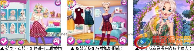 游戏操作:以滑鼠操作进行游戏,点选服饰道具帮艾莎进行装扮。