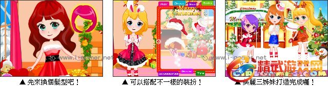 住在皇宫的三个可爱的小姊妹,平常最喜欢的就是节庆的到来,每年在平安夜的时候,她们都会开个联谊小舞会。这样一个值得庆祝的日子,怎么能不好好梳妆打扮一下呢?快来动动妳的巧手,让她们变成整场注目的焦点吧!