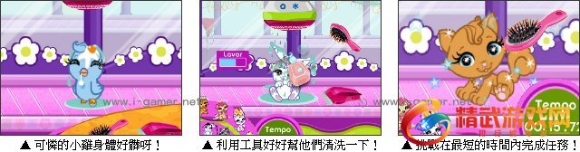 波莉的宠物美容店开张了,客人陆续送来了许多宠物,在外头顽皮了一整天,牠们的身体可真髒呢。利用肥皂、推子及梳子完成清洗任务,每只宠物都会计时清洗的时间,你能利用最短的时间完成所有的挑战吗?快来帮他们好好清洗一下吧!
