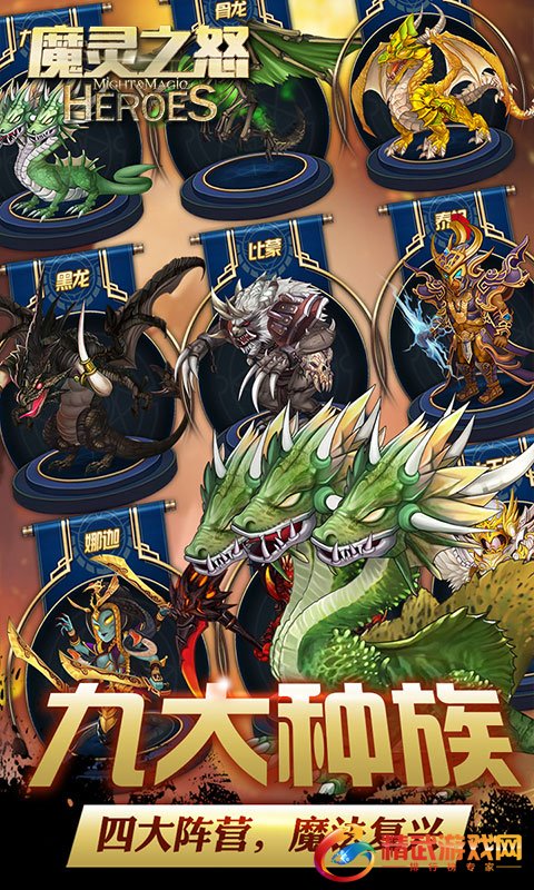 2、九大种族热血厮杀,四大阵营自由闯荡,魔幻史诗带来英雄无敌的体验。