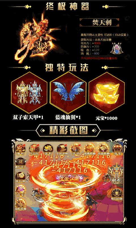 4.首冲翻倍!充值比例1:300,更有各种活动搭配,非凡体验,极致享受!