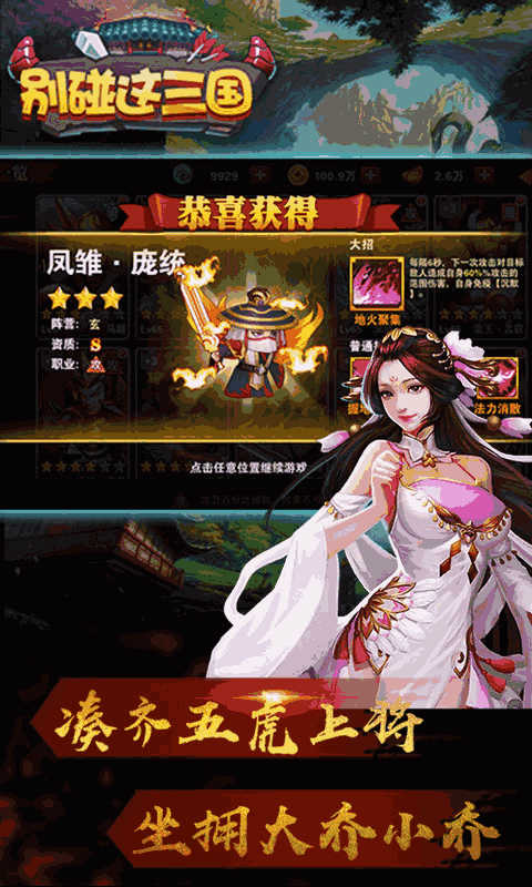 《别碰这三国BT版》是一款君临天下的三国系策略对战类手机网游,很多细节方面设计的很好,灵觉牌的玩法也比较吸引我。故事情节也很棒,代入感强,人物对话幽默风趣,人物形象可爱。目前看来,根据剧情需要,玩法难度不大。值得推荐!