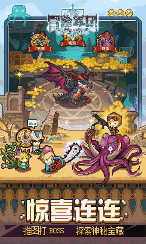 《冒险军团BT版-正版授权》是一款致敬经典的放置挂机RPG类手机网游,游戏整体风格采用了复古像素的美化画风,众多完美复刻且充满二次元色彩的人物场景设计,搭配套路万千的策略对战玩法元素,以及自由度超高的阵容组合机制,欢迎广大玩家们下载试玩!