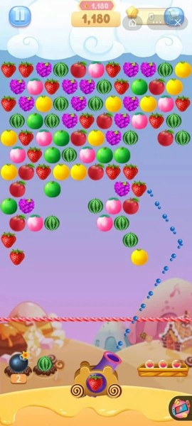3.瞄准之后我们就可以进行发射了,将相同水果进行瞄准射击。
