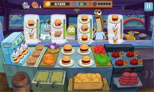 海绵宝宝大闹蟹堡王是一款根据经典动漫作品海绵宝宝改编而成的模拟经营类手机游戏,这款游戏的画面非常的卡通,将经典的海绵宝宝,派大星,章鱼哥等人物角色都完美的移植到了这款游戏当中来,我们可以在这里和可爱的海地居民进行各种互动,一起经营一家汉堡餐厅。