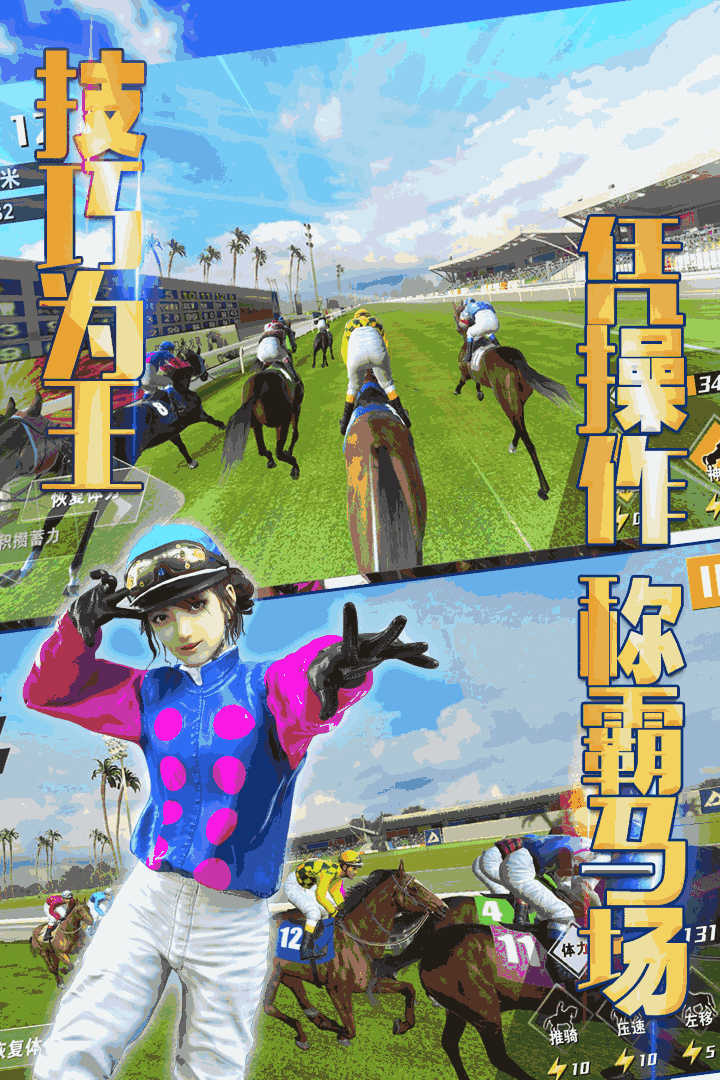 现实赛马比赛中,一名优秀的骑师可以激发马匹发挥120%的实力,而一名新手骑师则有可能成为马匹的累赘,其重要性不言而喻。《相马大师》力求为大家带来最真实的赛马体验,摒弃“数值对决”,将别具匠心的“快速反应”机制引入到游戏中。玩家通过“快速反应”让马匹获得更多体力,然后再根据比赛进程使用不同的战术控制马匹,仿佛化身一名真正的骑师,在世界赛场上扬鞭跃马,尽情享受驾驭的刺激感和夺冠的成就感!
