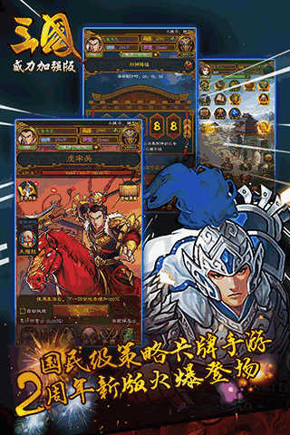 《三国威力加强版》是一款雄霸天下的三国系卡牌战略类手机游戏,游戏中拥有超过一百多个大大小小的经典历史战役设定,众多耳熟能详的三国时期的名兵将领,以及百玩不厌各种跨服资源竞技PK玩法,玩家们在游戏中可以通过加入到热血十足的跨服争霸赛之中,努力为你的国家赢得至高无上的荣耀,喜欢的小伙伴不容错过喔!