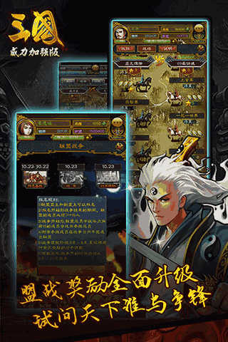 在《三国威力加强版》,银两、元宝、声望及各类神器宝物可谓唾手可得:在线俸禄、任务奖励、活动抽奖……只要有操作就会有奖励!随着等级上线开放,掠夺矿坑可掘取银两、结交兄弟可以获得体力赠送,征服女神可获得稀有装备、参与公会之争可获得更多升级材料……让您在争霸路上所向披靡无人能敌!