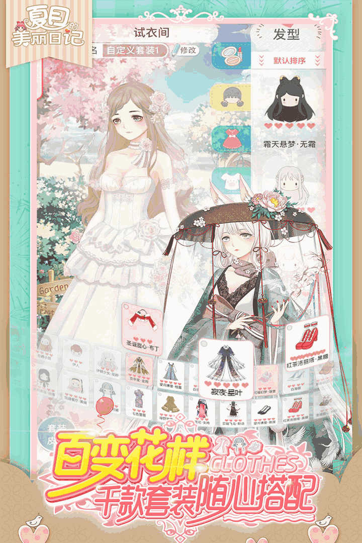 情侣服饰私人订制,打造夏目专属couple!游戏里所有服装都以绝高精度绘制,大到整体造型,小到细节配饰,无不一一刻画;休闲时尚、古装和服、哥特复古,童话梦幻,涵盖所有风格,视觉盛宴堪比秀场。