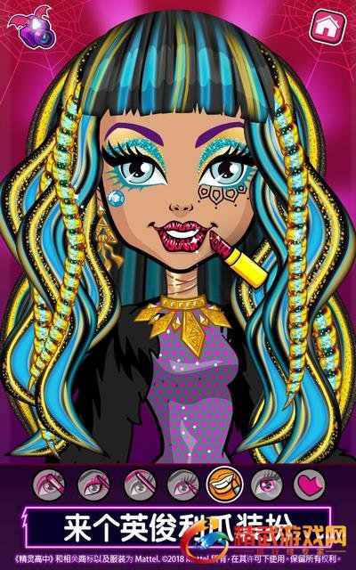 >使用你所见过的最棒的化妆工具,给你那些美丽的怪物们梦寐以求的装扮!添加闪电贴纸和蜘蛛脸珠宝,获得额外恐怖的装饰。