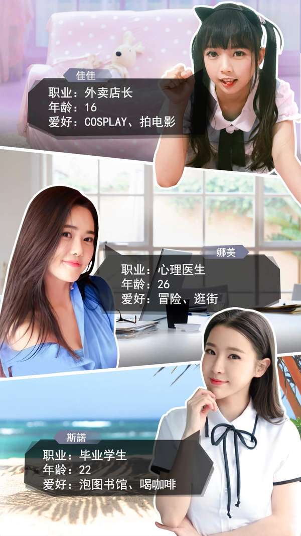 ☀三位女角色会同时进入你的剧情游戏,希望你能陪伴她、追求她。解开她们的内心。除了文字的讯息,还会给你发声音讯息,暖暖温柔的声音
