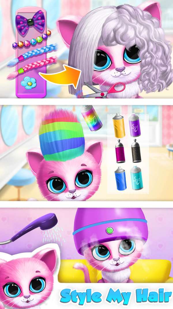 加入最好的宠物朋友琪琪和菲菲在他们的新宠物美容院冒险!挥挥手,卷曲,伸直,剪他们的头发。添加发饰,创造出有史以来最好的发型。装饰宠物指甲,做最可爱的宠物美甲。成为化妆专家,画出琪琪和菲菲的脸。设计你自己的宠物服装,裙子,衬衫,配饰和打扮你可爱的小宠物朋友。