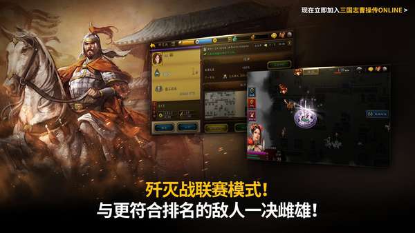 ◈牢关、黄天神兽、点将坛、竞武夺宝等多种PVE、PVP游戏模式,上万套武将、装备、阵法搭配。