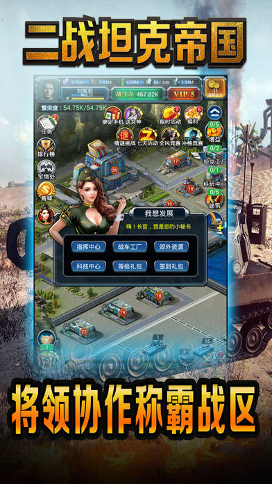 【基地建设】:建造升级属于自己的大本营,成立自己的坦克帝国。