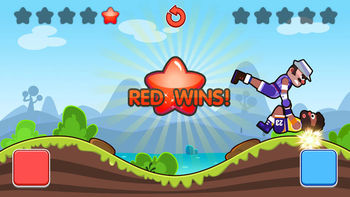 ✪点击屏幕上的按钮,就可以蹬腿,此游戏有趣之处在于,两人还能手拉手在空中翻转