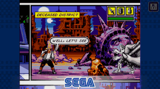 《ComixZone》也是SEGA的经典街机动作系列之一的作品,玩家控制角色通过,模拟漫画一样的叙事过程。用打击跳跃的操作简单控制,利用游戏裏的道具和装备,与敌人对战。