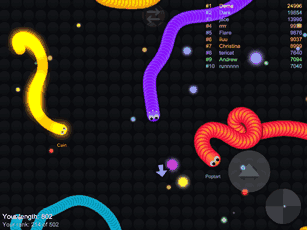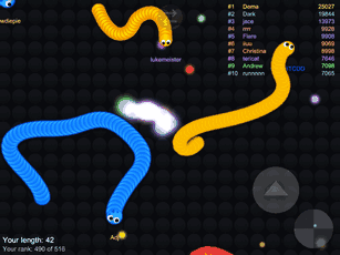 ❈控制摇杆走位你的小蛇,吃掉地图上彩色的小圆点,就会变长。