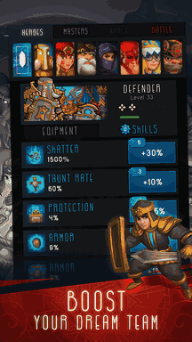 Improve your basic skills and enhance your Heroes. Review tactics before fights with bosses and upgrade the required skills. The tide of battle depends on it!