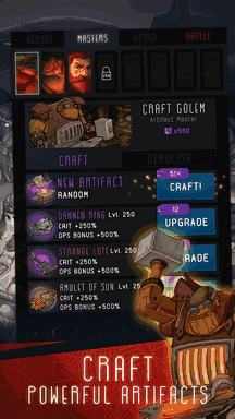 Your main weapon and defense — a blinding quick TAP! With one movement of your finger you can summon lightning down on the heads of your enemies, make heroes use their abilities, or enhance their equipment. Stop attacking monsters, collect gold, and find rare artifacts in Patchworld.