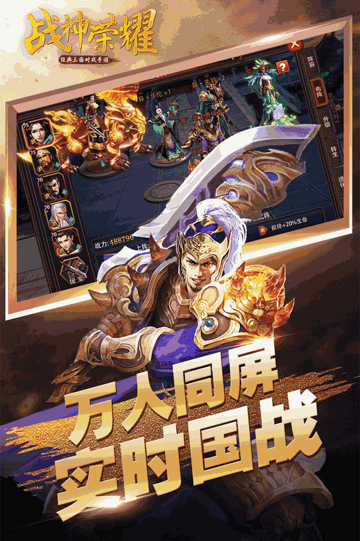 《战神荣耀》是一款运筹帷幄的三国系国战策略类手机网游,游戏本身是根据原版页游进行改编,有着大量深度复刻的经典玩法元素,支持绝对自由的交易机制,以及各种屠龙再现般的多人同屏团战场面,搭配特色新奇的装备一键回收系统,感兴趣的玩家绝对不容错过这款精良之作喔!