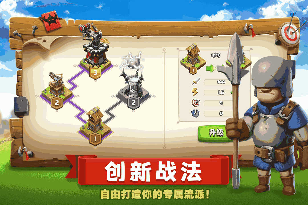 2、在开始游戏的时候玩家需要不断的建造防御塔来抵御敌人的进攻,如果敌人突破了防线你还有着奇兵的;