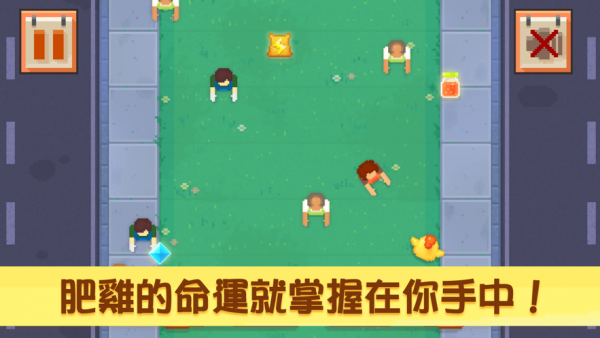左右公鸡逃亡这是一个趣味性十足的逃亡闯关游戏,玩家需要操控一只公鸡进行各种逃亡闯关任务,游戏玩法十分简单,有许许多多丰富的关卡模式等待你的解锁,在游戏的同时你一定要小心道路上的人群,不要被他们捉到,否则任务就会失败。