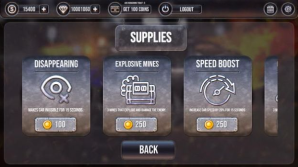 2.你的汽车所具有的战斗能力越强大,可以更加轻松地摧毁对手的汽车。
