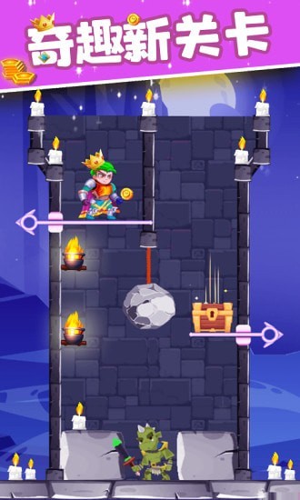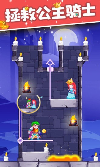 游戏内的画面非常的精美,各种各样的城堡,让我们看起来感到非常的华丽。但是我们可爱的公主却被关在地牢当中,我们需要闯过重重关卡将公主平安的救出来。游戏非常考验玩家的逻辑思维能力,玩家需要根据关卡内陷阱的不同,做出及时的判断。