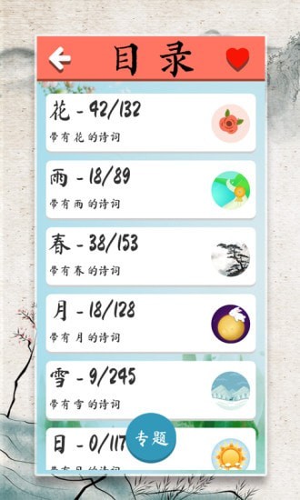 1.玩家可以根据主题章节的内容来探索游戏中会出现的古诗词。