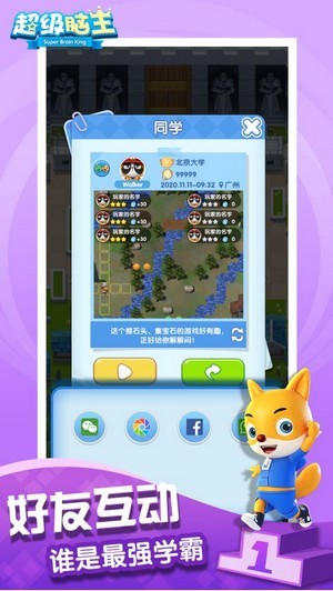 超级脑王是一款非常有趣的卡通益智类小游戏,游戏中有非常多的益智类关卡让玩家进行挑战,各种关卡的内容各不相同,玩家需要去找到游戏中的关系与联系,找到合适的方法与规律去完成关卡,找到问题的关键所在,完成冒险,获得奖励。
