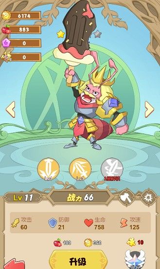 3、英雄升级:点击游戏界面下方的【蚂蚁】,进入英雄蚂蚁界面,在该界面可以查看自己拥有的蚂蚁,选择想要升级的英雄点击进入,在英雄个人信息界面点击升级选项即可。