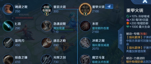 1、刘备的专精装备是重装火铳和重甲火铳,购买专精装备后刘备的子弹不再附带穿透效果,在命中敌方英雄的时候提供一定的生命回复效果,虽然刘备的爆发能力有所下降,不过附带的回血效果搭配大招可以提升刘备的生存能力,从一个高爆发战士转变为重装战士,在团战过程中不会突然暴毙,拥有更强的持续战斗能力。