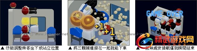 随着时间的流逝,可用空间当然也会面临不足!这时火眼金睛的司机就该登场啦,在他的扫视下,不论姿势,只要堆叠在一起的头达到三颗以上,乘客就得乖乖下车喽!不过若真没空隙,外面不识相的乘客又想再挤进来,司机可就会瞬间霸气的结束载运唷!现在就来试试吧!